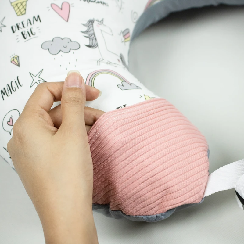 بالش تامی پیلو از برند دی روحه DieRuhe یک بالش چند منظوره است. این بالش به عنوان بالش شیردهی به راحتی با بند به کمر مادر بسته می شود و مادر و نوزاد را در وضعیت ارگونومیک قرار می دهد تا شیر دادن را راحت تر کند و از کمردرد و آسیب های گردن و شانه جلوگیری کند. هم چنین در این حالت می توانید از جیب های این بالش برای قرار دادن پد شیردهی یا وسایل دیگر استفاده کنید. کاربرد دیگر این بالش به عنوان بالش تامی تایم است. برای زمانی که لازم است نوزاد به شکم دراز بکشد. در این حالت می توانید به دو حلقه ای که در بالش وجود دارد دندان گیر یا اسباب بازی های مورد علاقه فرزندتان را آویزان کنید تا کودک از این وضعیت خوابیدن لذت بیشتری ببرد. کاربرد دیگر این بالش برای آموزش نشستن وبه عنوان نشیمن کودک است تا کودک در محیطی ایمن و نرم باشد و نگرانی از افتادن کودک به طرفین وجود نداشته باشد. در این حالت بهتر است با وارو کردن جیب ها بند را درون جیب های دو طرف بالش پنهان کنید تا از دسترس کودک خارج شوند. روکش این بالش از پارچه صد در صد پنبه ای تهیه شده، زیپ دارد و قابل جدا شدن و شستشو می باشد.
