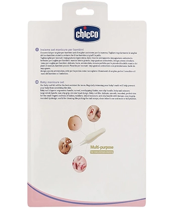 ناخنهای نوزاد در ماههای اول بسیار کوچکاند و به دقت بالایی برای کوتاهکردن نیاز دارند؛ بنابراین بهتر است از قیچیهای مخصوص کودکان استفاده کنید که به این منظور تولید شدهاند. محصولی که میبیینم، ست ناخنگیر کودک از برند «چیکو» است. در این ست یک ناخنگیر کوچک، یک قیچی و یک سوهان ویک تویزر(پنس) قرار داده شده است. قیچی این کار بدنهای از جنس پلاستیک و تیغهای فلزی دارد. همچنین برای جلوگیری از آسیبرسیدن به گوشههای ناخن، سری قیچی به صورت گرد طراحی شده است. ناخنگیر این مجموعه نیز تیغه فولادی و بدنهای پلاستیکی دارد و دارای یک پنس پلاستیکی برای تمیز کردن بینی نوزاد میباشد. این ست از مواد مرغوب تولید شده و در آن مادهی مضر BPA به کار نرفته است.