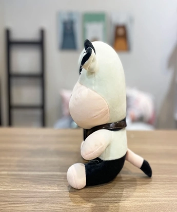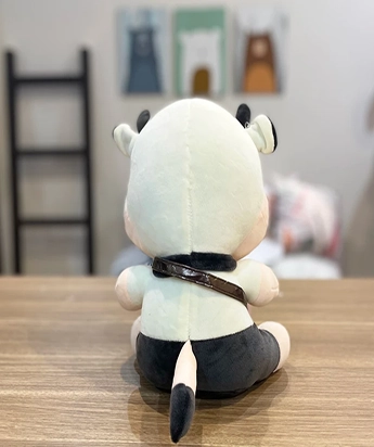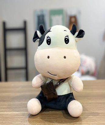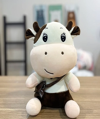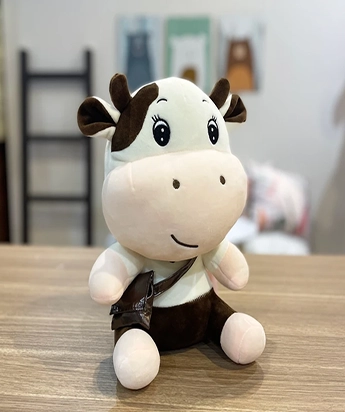 گاو کیف دار، یک کیف کوچک از جنس چرم را با خود دارد و برای همراهی شما در هر کجا که دوست دارید، همیشه حاضر و آماده است. جنس پارچه ی این عروسک استرجکش بوده و چشم ها، ابروها و دهان آن همگی به صورت دوخت هستند. نرمی و انعطاف پذیری عروسک، یکی از مهم ترین ویژگی های آن است. عروسک گاو کیف چرمی یک عروسک پولیشی بوده که با الیاف توپی بسیار نرم پر شده است.